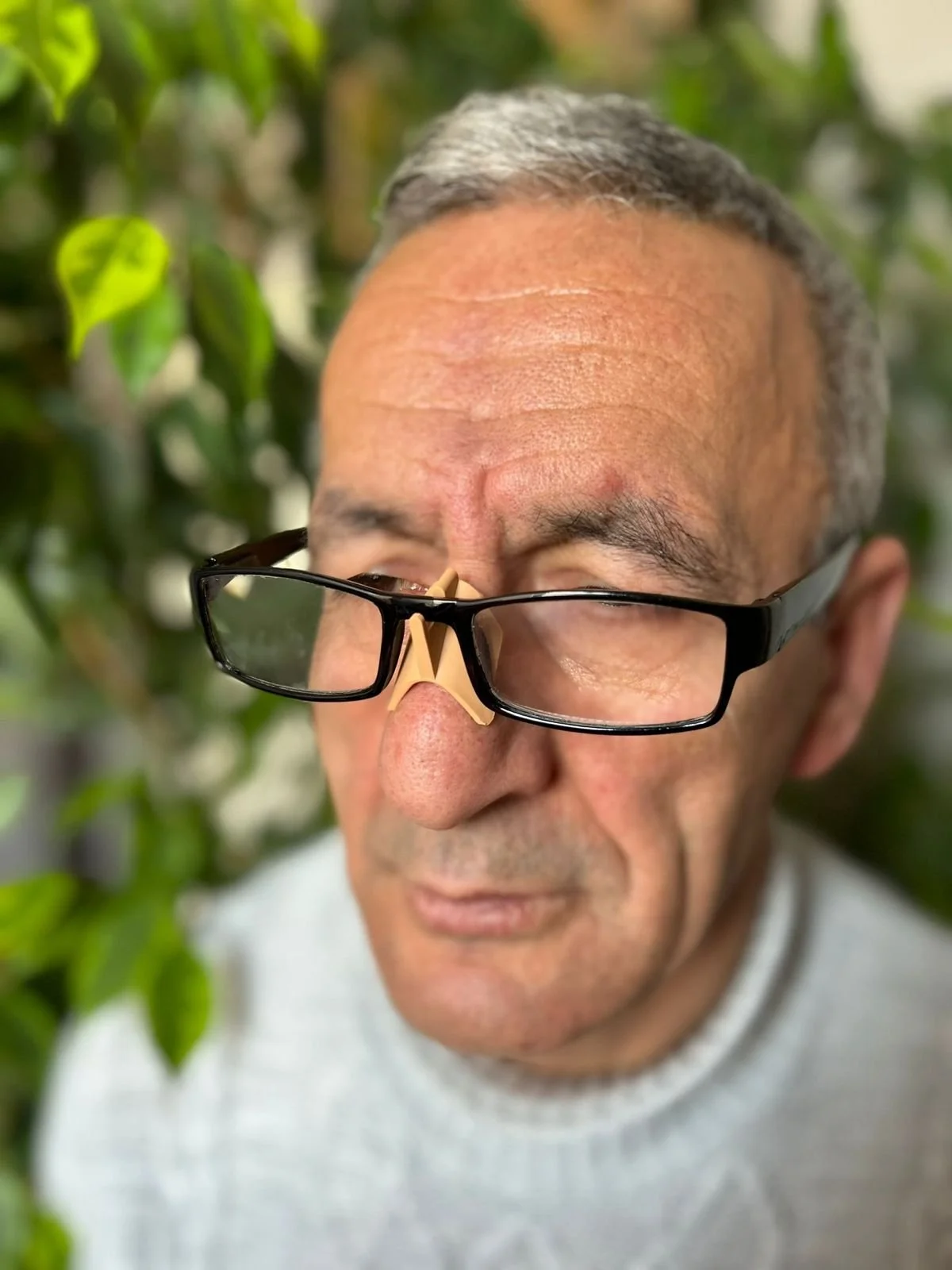 The Optic Adapter is a soft plastic-based material designed to sit on the nose and under the glasses.